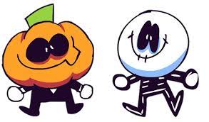 Det här är Skid och Pump. De hade jag aldrig hört talas om innan Mimi berättade att hon och en av hennes assistenter skulle vara just dem på Halloween. Mimi har inte så lätt med tidsuppfattning men lär sig hela tiden genom att ha koll på kalendern. Något hon har lärt sig är att hon behöver ha mycket tid på sig att fixa allt till en av hennes verkliga favoritevenemang, Halloween! Nu var det fyra veckor kvar, jag och hennes assistenter tyckte att det fanns gott om tid.